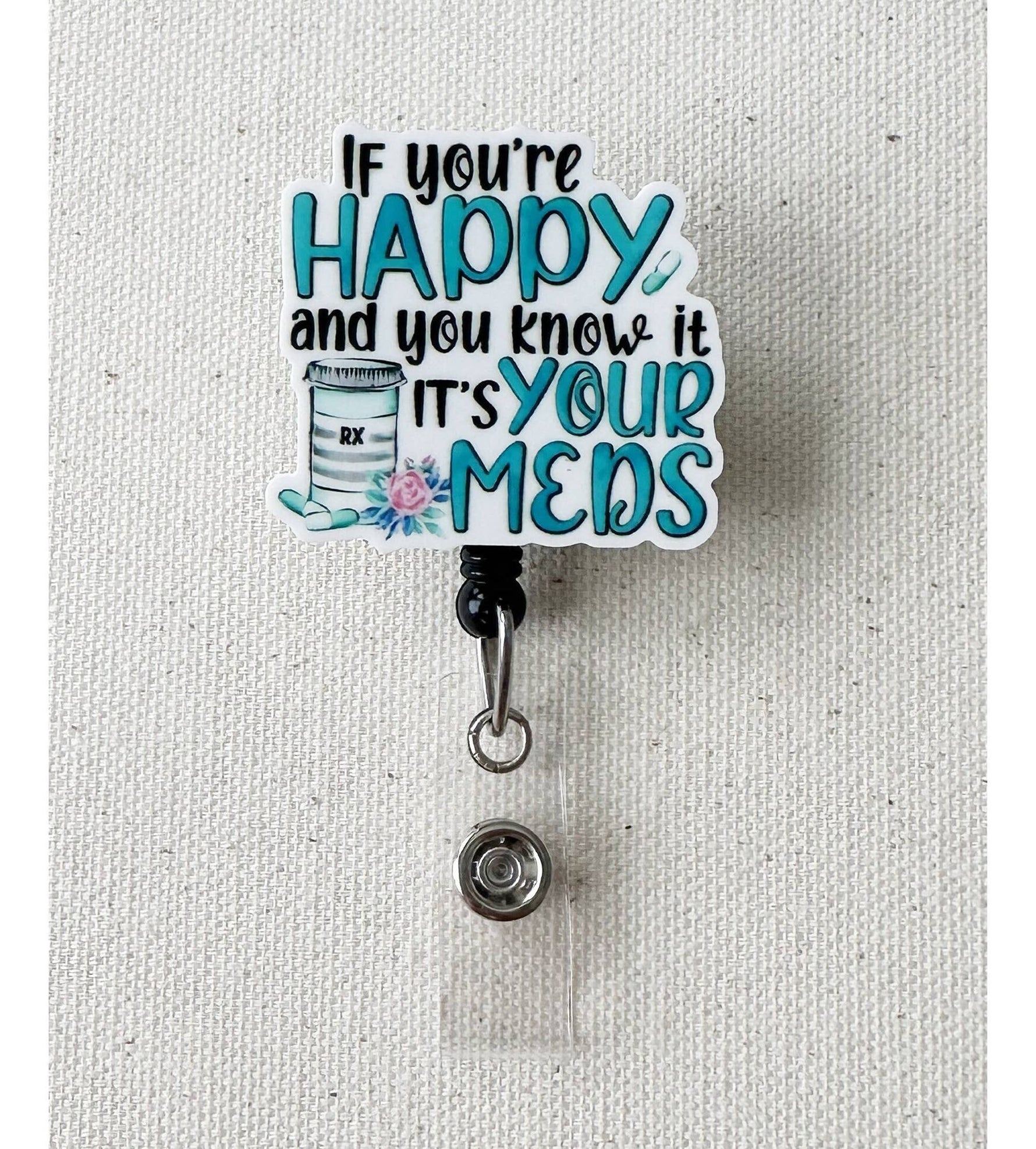 Happy You Know It It's Your Meds Acrylic Retractable Badge